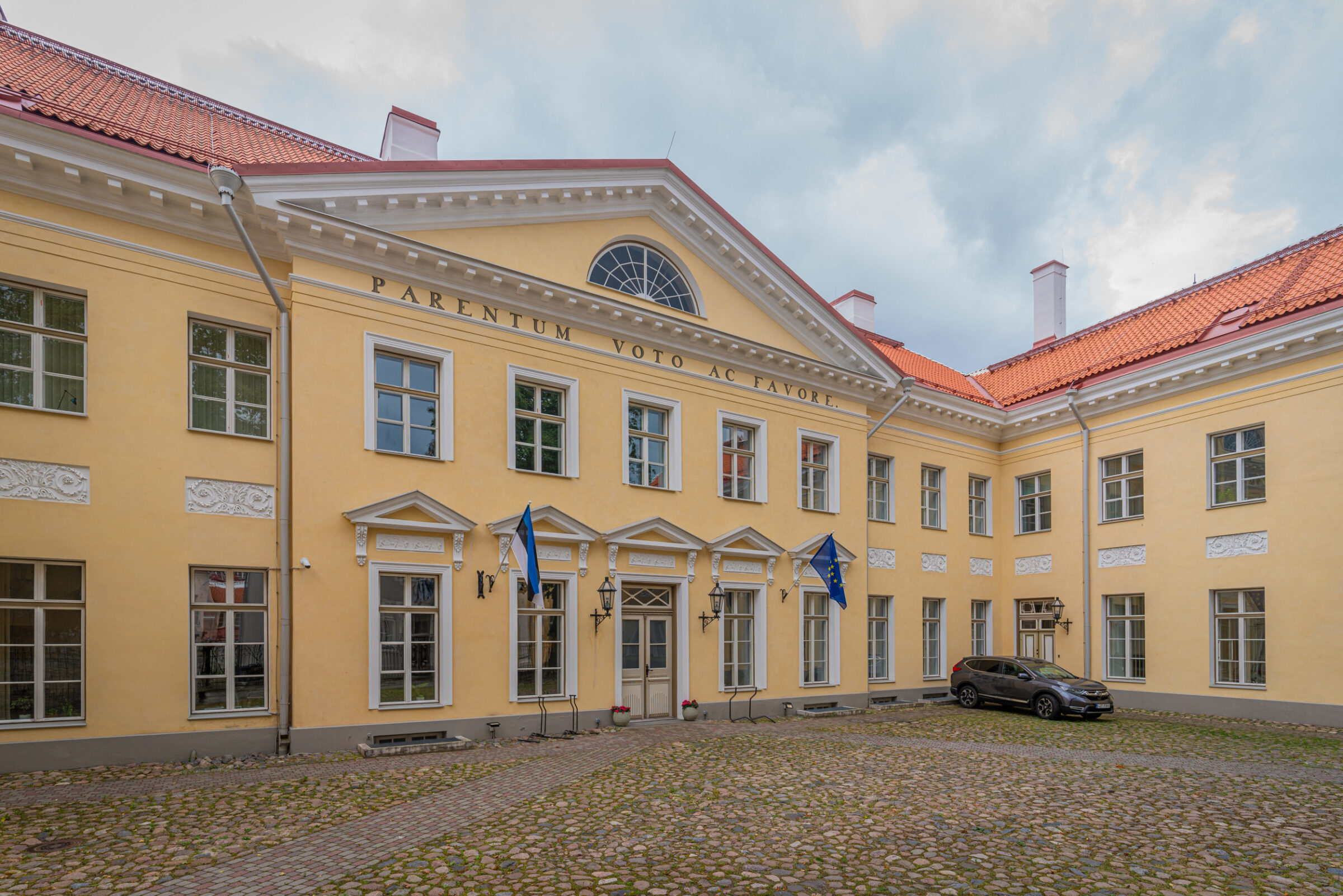 The rear façade rises dramatically above the Toompea cliff and features a powerful portico with six Ionic columns. The interior of the palace has been repeatedly modified and updated over time, yet many original details have been preserved. Since 1920, the building has housed various ministries, and since 2004, it has been home to the Office of the Chancellor of Justice.