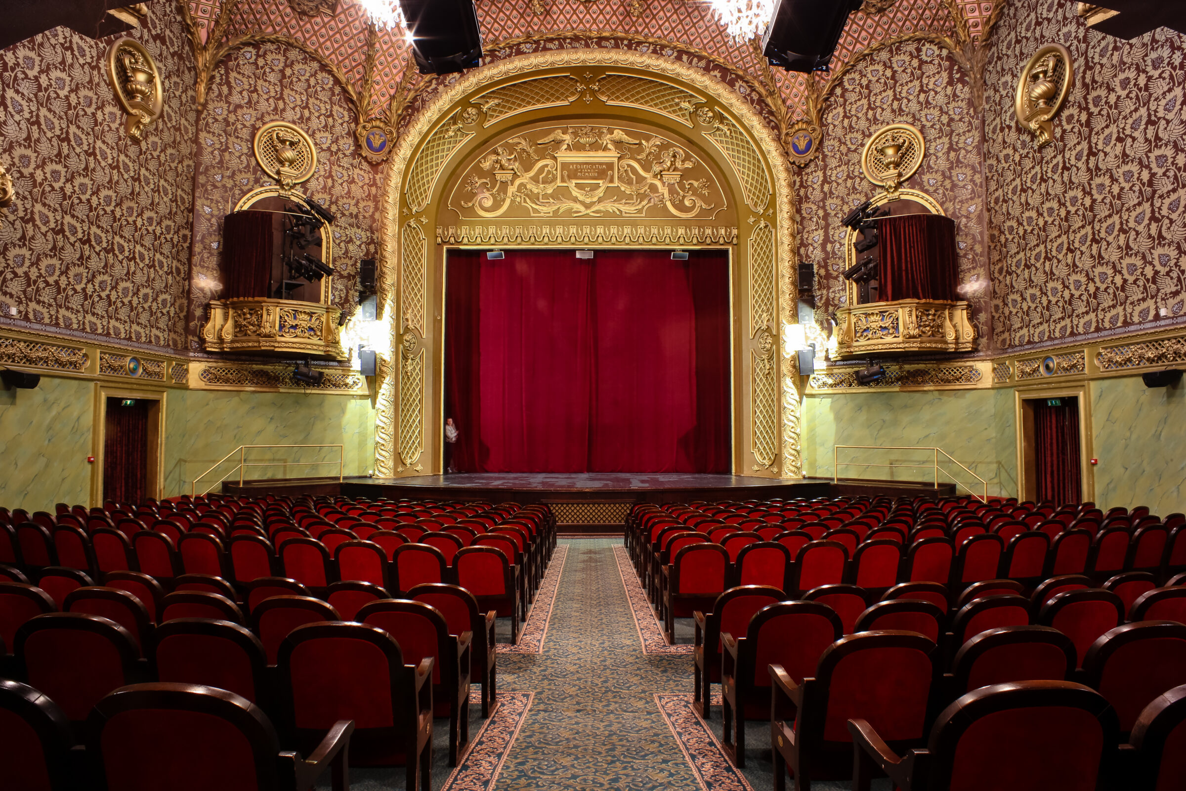 At the heart of the building is the former cinema hall, seating 700, covered by a suspended ceiling imitating vaults with abundant gilding and ceiling paintings. The representative spaces surrounding the hall were decorated just as lavishly. The building’s luxury is highlighted by the fact that at the time it was the only cinema in Tallinn with a cloakroom. In 1929, the first sound film in Tallinn was shown here. Since 1948, the building has been used by Südalinna Theatre and its predecessors. During World War II – in 1944 – the building was used by the Estonia Theatre.